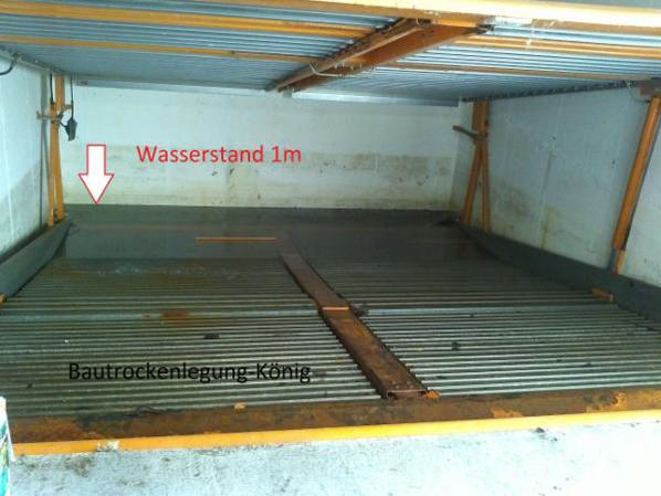 Doppelparker gefüllt mit eindringendem Wasser durch die Betonwände