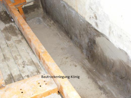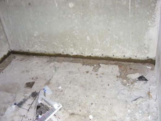 Durch fehlerhafte Bauausführung der Abdichtung im Wand,- Bodenanschluß konnte Wasser in das Gebäude eindringen.